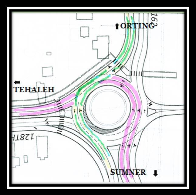 FOLLOW YOUR PATH ON THE ABOVE PROPOSED ROUNDABOUT DRAWING STARTING FROM ORTING TO CONTINUE NORTH ON SR162
